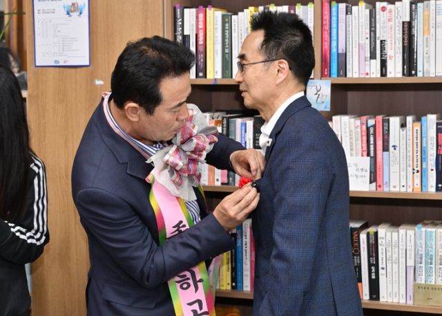 백영현 시장이 접은 카네이션을 받은 김현철 교장과 새내기 교사는 “스승의 날을 맞아 시장님이 직접 접은 카네이션을 받게 돼 기쁘다. 전달해 주신 마음을 깊게 간직하며 교육에 나서 인재 양성에 힘쓰겠다”고 말했다.