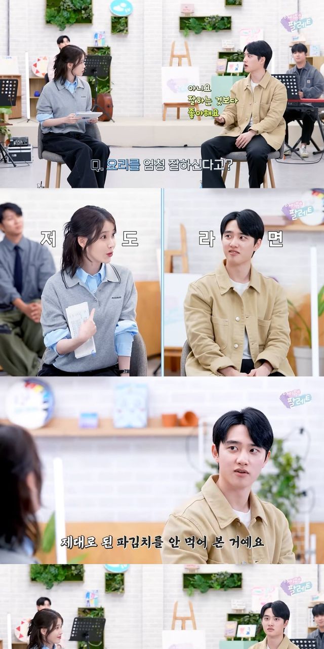 이어 도경수는 먹는 걸 좋아해서 요리를 좋아하게 됐다고 계기를 밝히며 가장 좋아하는 음식으로 라면을 꼽았고, 아이유는 격하게 동의했다.