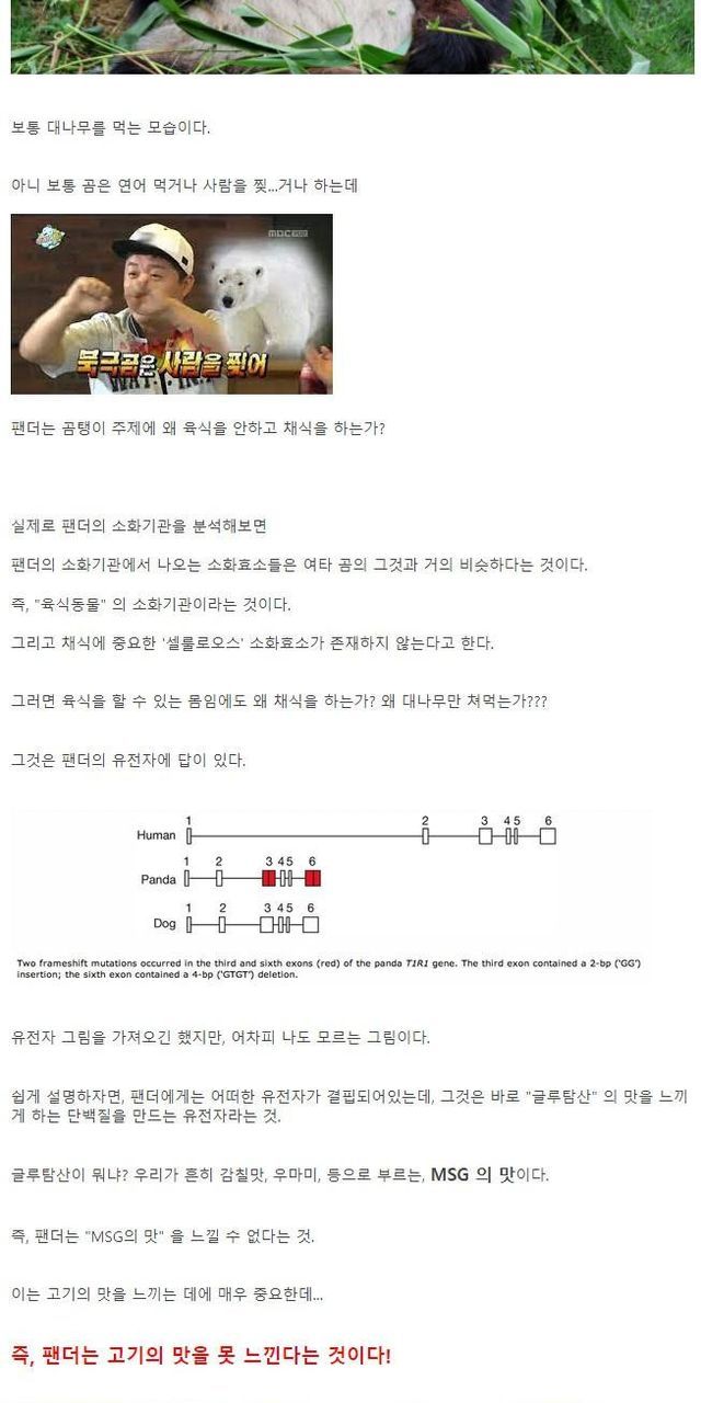 * 그렇다면 그 육식 소화효소를 가지고도 팬더는 고기를 아예 안먹는가?