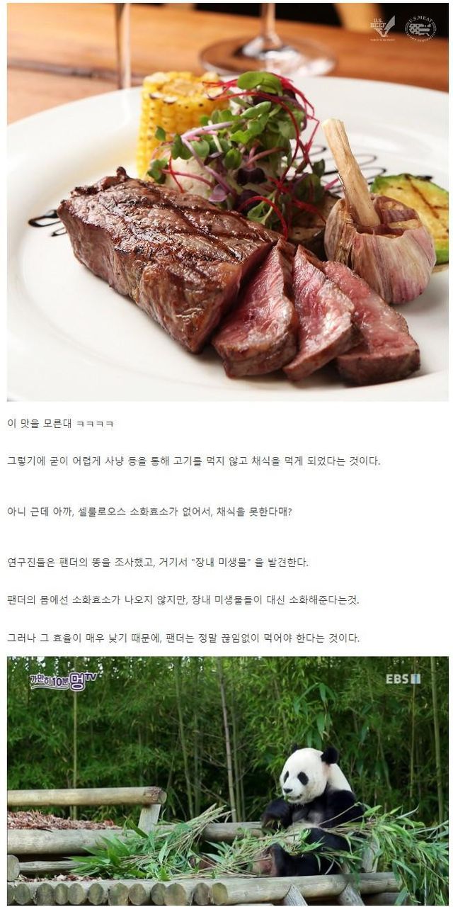 실제로 저 팬더가 고기맛을 알아서 고기를 먹은 것인지,