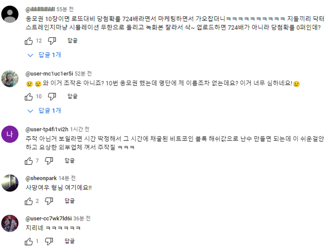 2) 3억 당첨자발표했는데, 명단에 없는 사람이고, 자신은 응모했는데 명단에 없다는 의혹 제기중