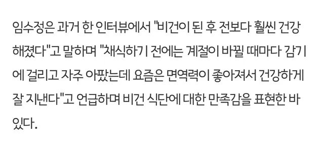 채식하고 면역력도 좋아지고 훨씬 건강해졌다고함