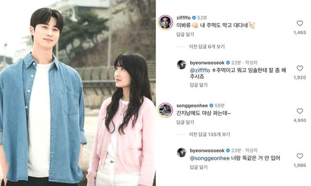 해당 게시글에 임솔 오빠 임금 역의 배우 송지호는 “이봐 류, 내 주먹도 막고 대단하다”라고 댓글을 달았다. 변우석은 이에 “주먹이고 뭐고 임솔한테 잘 좀 해주시죠”라고 센스 있게 답변했다.