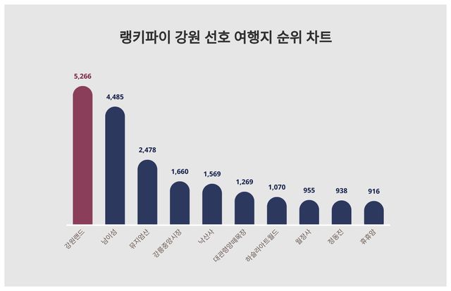 ▲강원 선호 여행지 트렌드 지수 분석 결과 ⓒ랭키파이