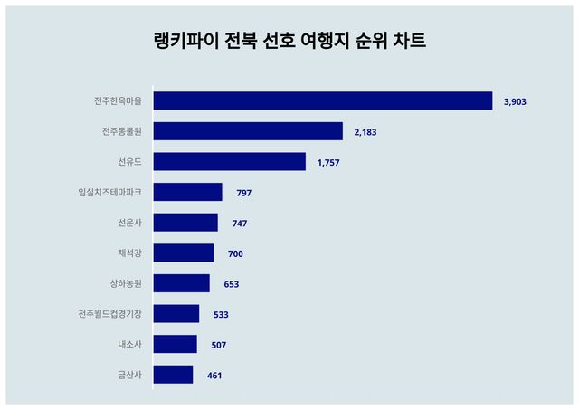 ▲전북 선호 여행지 트렌드 지수 분석 결과 ⓒ랭키파이
