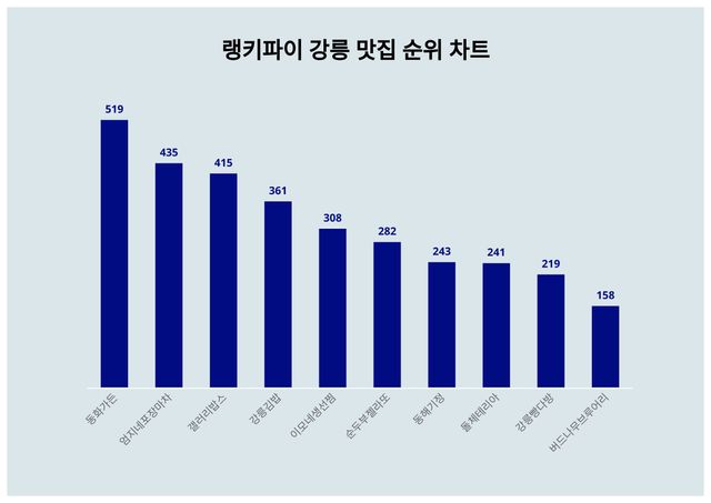 ▲강릉 맛집 트렌드 지수 분석 결과 ⓒ랭키파이