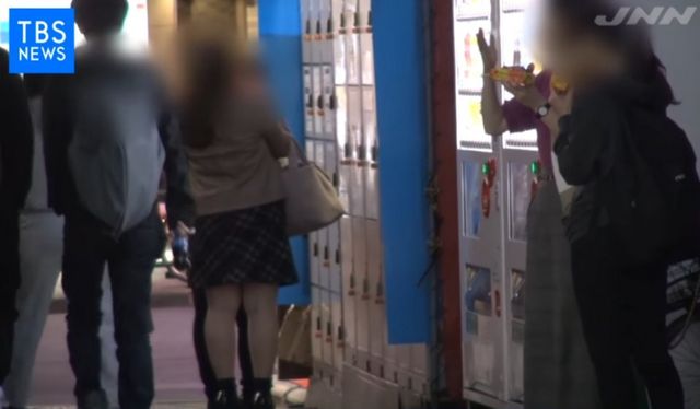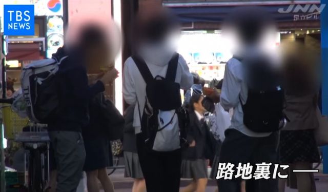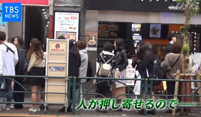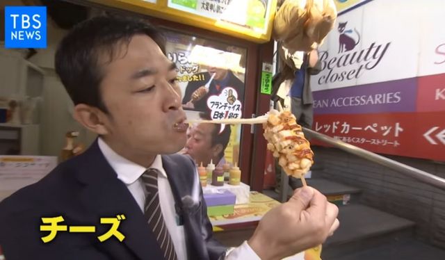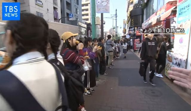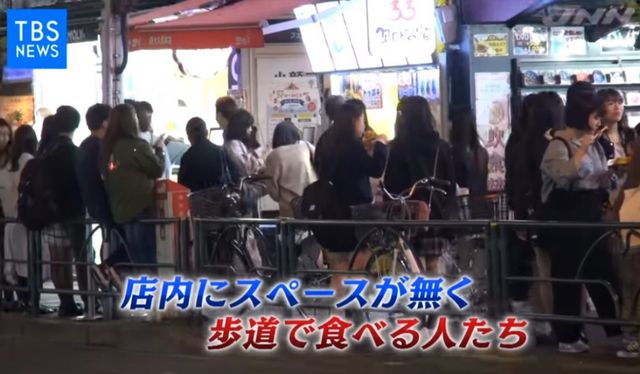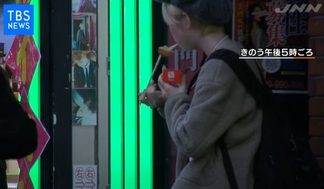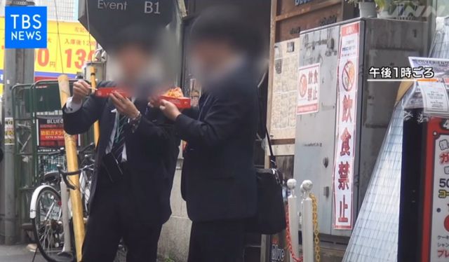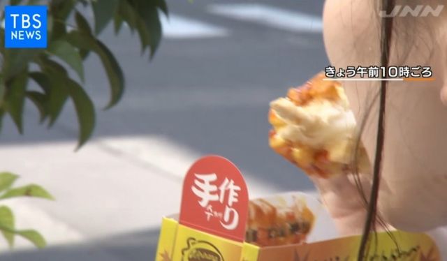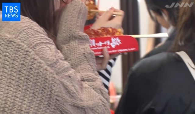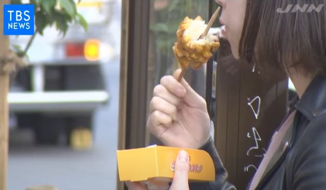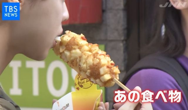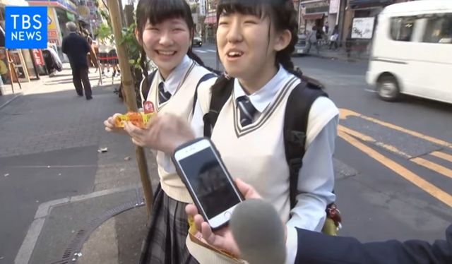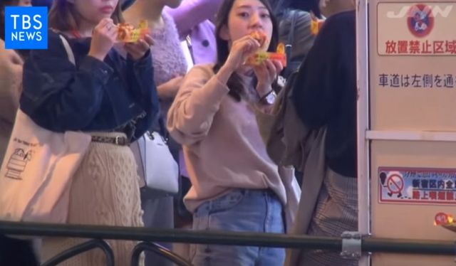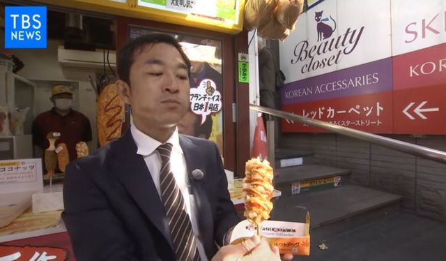 일본의 많은 젊은이들이 핫도그 하나씩 물고 있습니다.