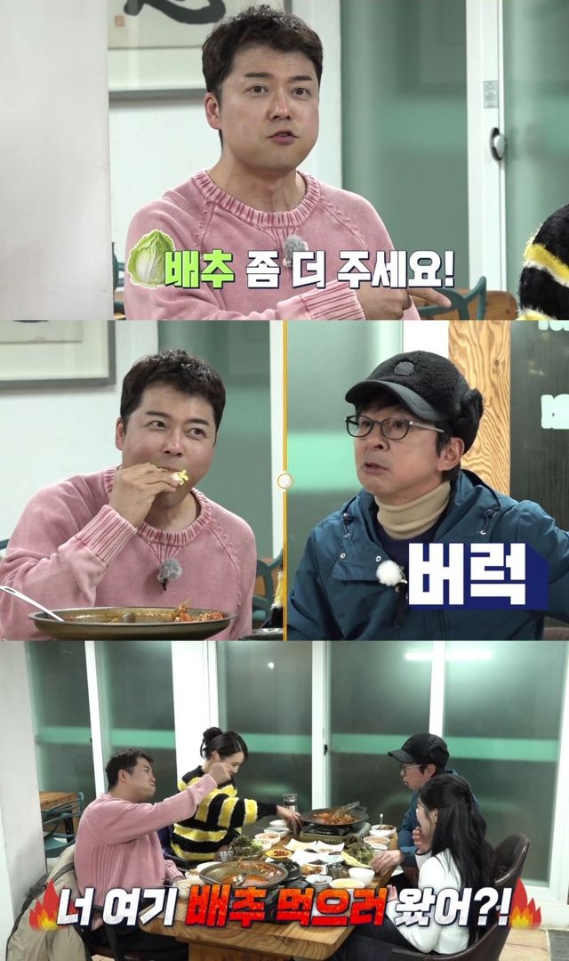 그중 가장 배고팠던 전현무는 홀리기라도 한 듯 음식에 집중했다. 특히 전현무가 알배추에 꽂힌 모습으로 웃음을 자아냈다. 전현무는 "알배추가 정말 기가 막히네"를 연발하며 알배추를 흡입했다.