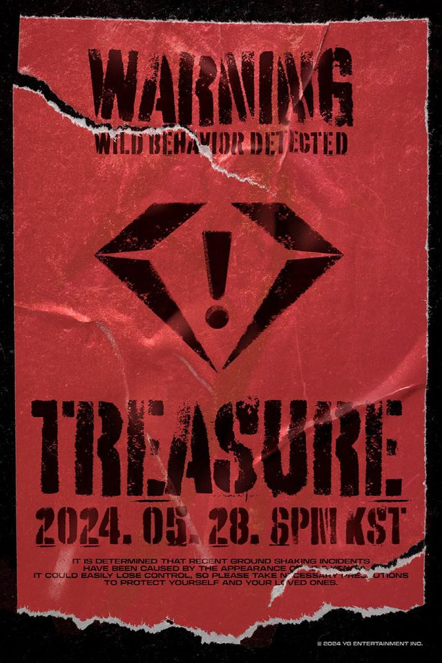 포스터 상단에 새겨진 ‘WARNING WILD BEHAVIOR DETECTED’ 경고 문구가 심상치 않다. ‘강력한 존재가 가까이 있으니 주의하라’라는 의미를 내포하고 있기 때문. 짙은 레드 배경, 트레저 로고 속 박힌 느낌표는 몰입도를 한층 배가했다.