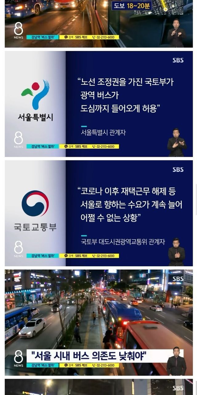 서울시는, 국토부가 광역 버스를 도심까지 들어오도록 허용한 것이 정체의 원인이라고 주장합니다.