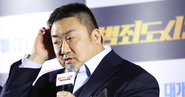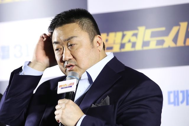 배우 마동석이 지난해 5월 22일 오후 서울 강남구 메가박스 코엑스에서 진행된 영화 '범죄도시3' 언론배급시사회에서 취재진 질문에 답하고 있다. / 뉴스1