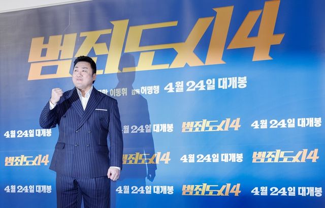 배우 마동석이 지난 3월 11일 서울 성동구 메가박스 성수에서 열린 영화 범죄도시4 제작보고회에 참석해 포토타임을 갖고 있다. / 뉴스1