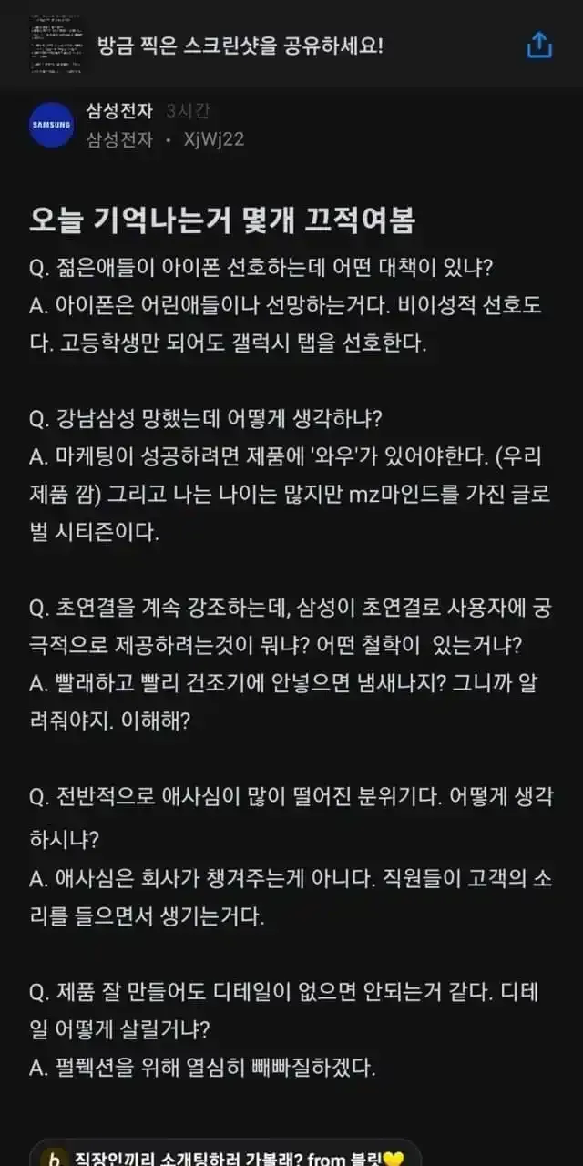 삼성 “글로벌 스마트폰 점유율 1위” 뒤의 위태로운 상황ㄷㄷㄷ