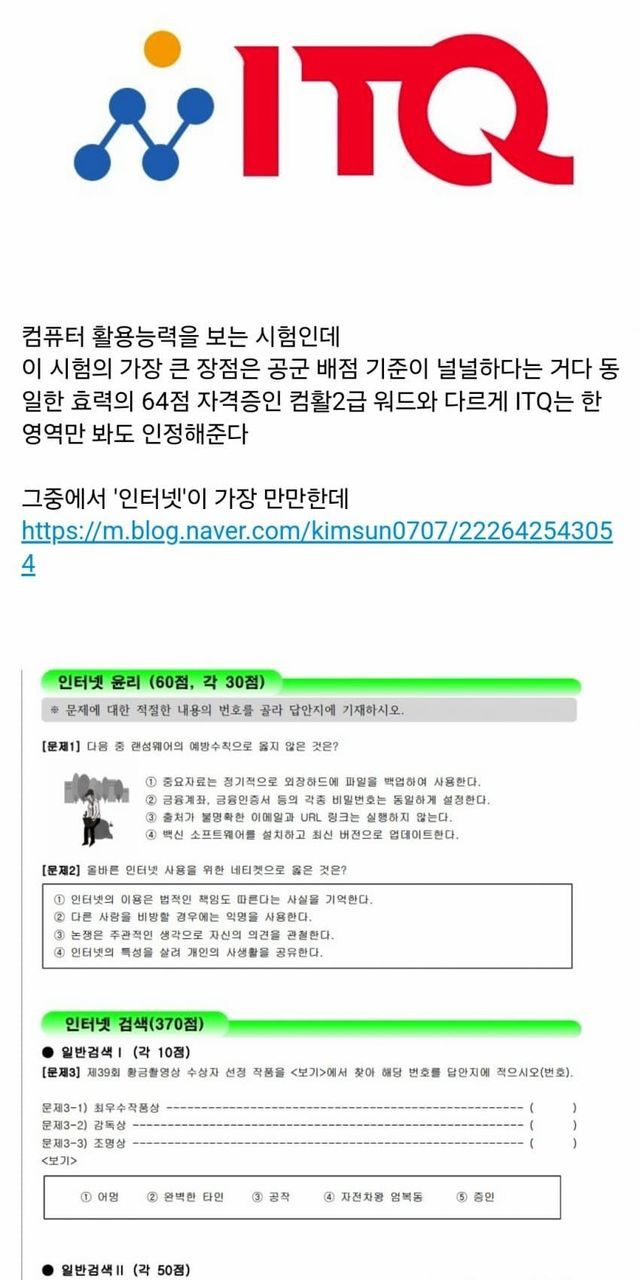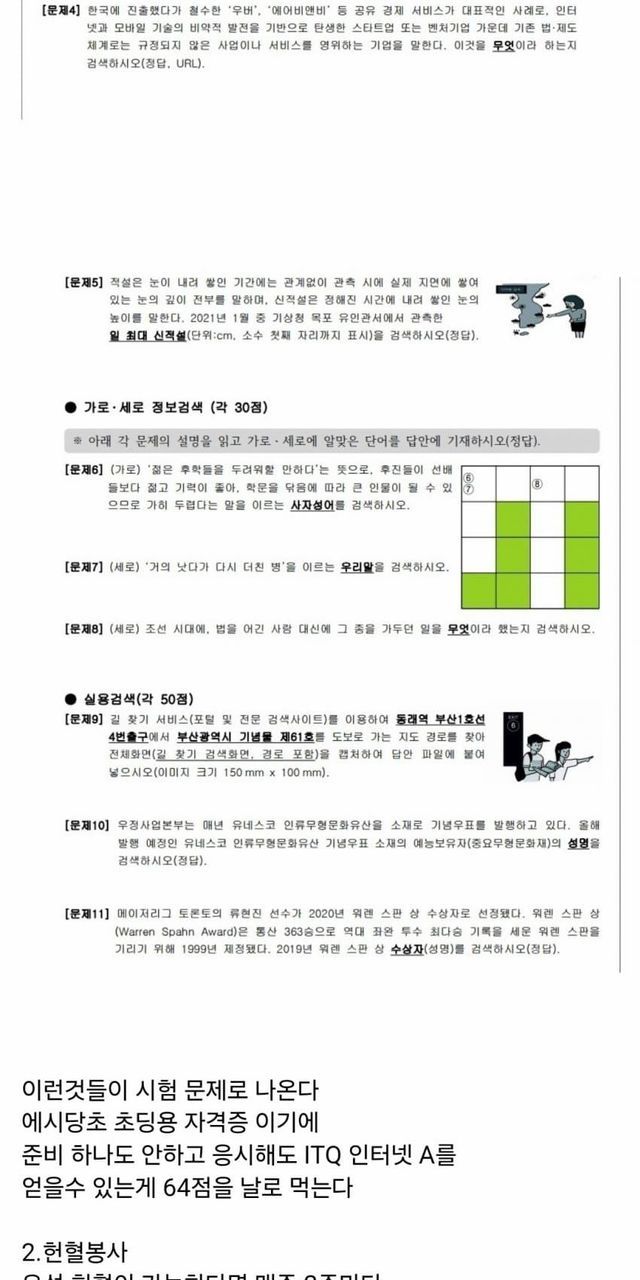 초딩용 공인자격증 itq(64점)+출결 개근(20점)이라는 전제 하에