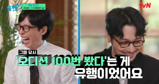 유재석은 "오디션을 많이 봤을 때 몇 개 정도 보셨냐"라며 물었고, 변요한은 "그때 당시에 100번이라고 했던 게 유행이었다. 100번 본 거 같다"라며 너스레를 떨었다.