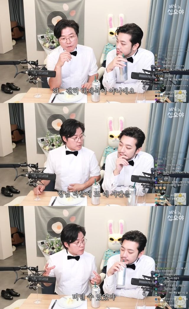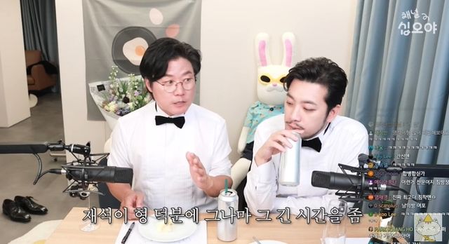 이에 침착맨은 "옆에서 혹시라도 좀 재밌게 보는지 안 보는지, 계속 말을 걸어주셨다"며 "괜히 대재석이 아니다"고 공감했다.