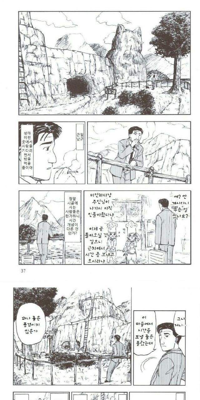 시골에 출장 왔다가 일 꼬여서 식당에서 밥 먹는 망가