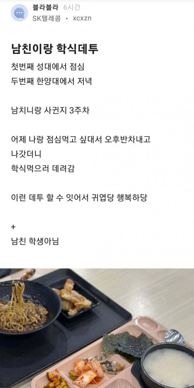 남친이랑 학식 데이트 해서 행복하다는 글쓴이