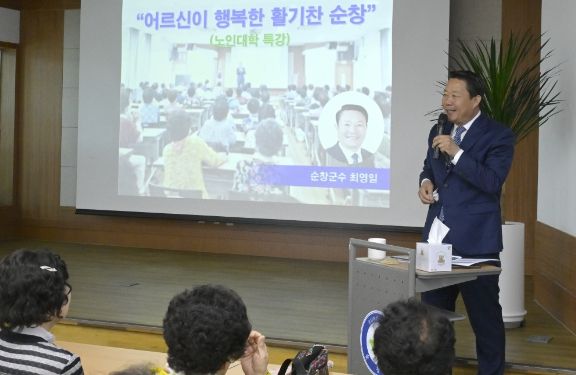 한편 지난 3월 21일 첫 개강을 시작으로 오는 11월까지 계속되는 순창군 노인대학은 순창지역 어르신들의 사회활동 참여 욕구충족과 배움의 기회를 제공하기 위해 매주 목요일 2시간씩 30주간 계속되며, 노인건강관리, 여가활동, 특강, 일반상식, 지역탐방, 기업체 견학 등 다양한 프로그램으로 진행된다.