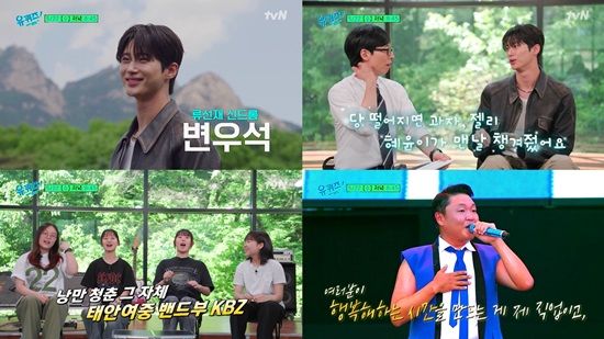 오는 22일 방송하는 '유퀴즈' 245회에는 모두의 월요병을 치료한 '류선재 신드롬' 배우 변우석, 커버 영상 조회수 110만을 기록, 원곡 가수도 극찬한 태안여중 밴드부 KBZ, 그리고 축제의 신 가수 싸이가 출연한다.