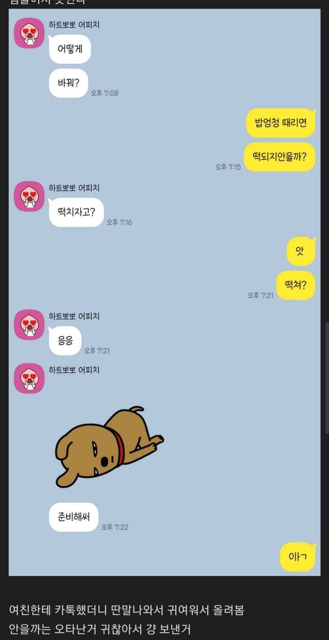 평소처럼 익게에서 놀다가 집밥으로 떡만든다는 새끼가 글올렸는데 여자친구 생기면 다 저렇게 카톡하고 노냐?