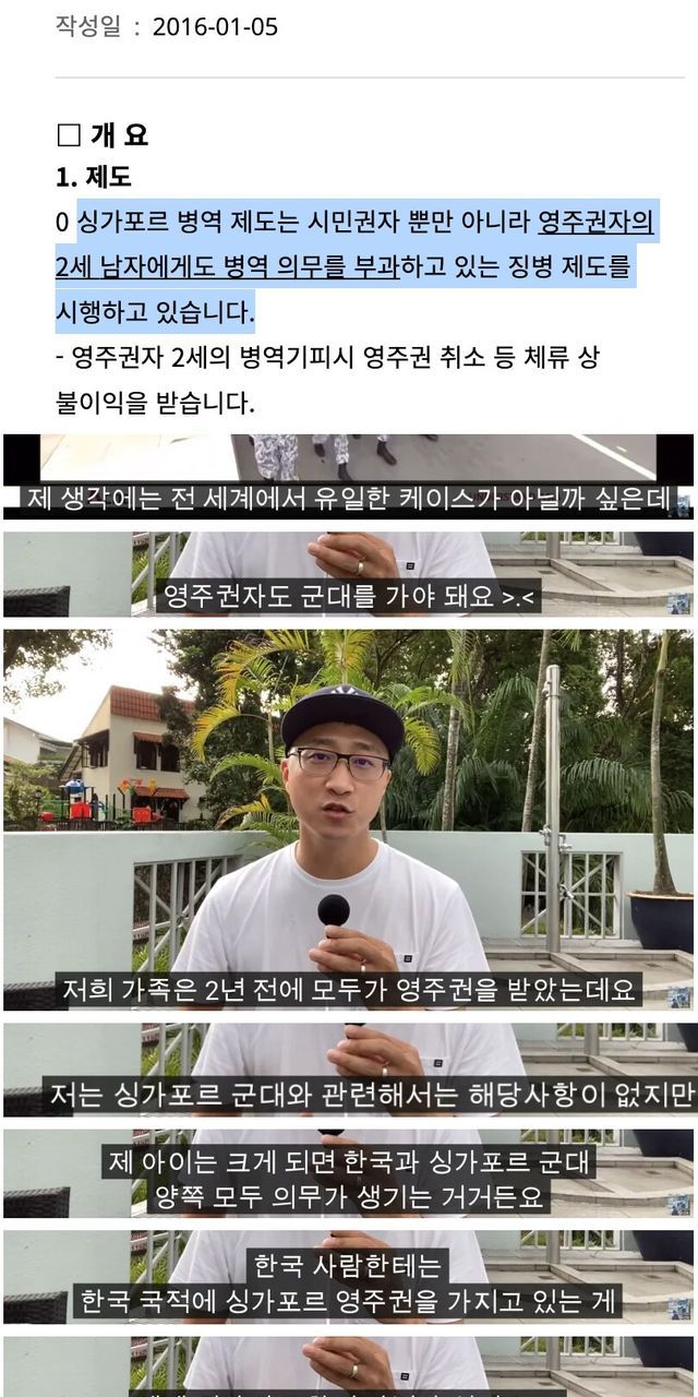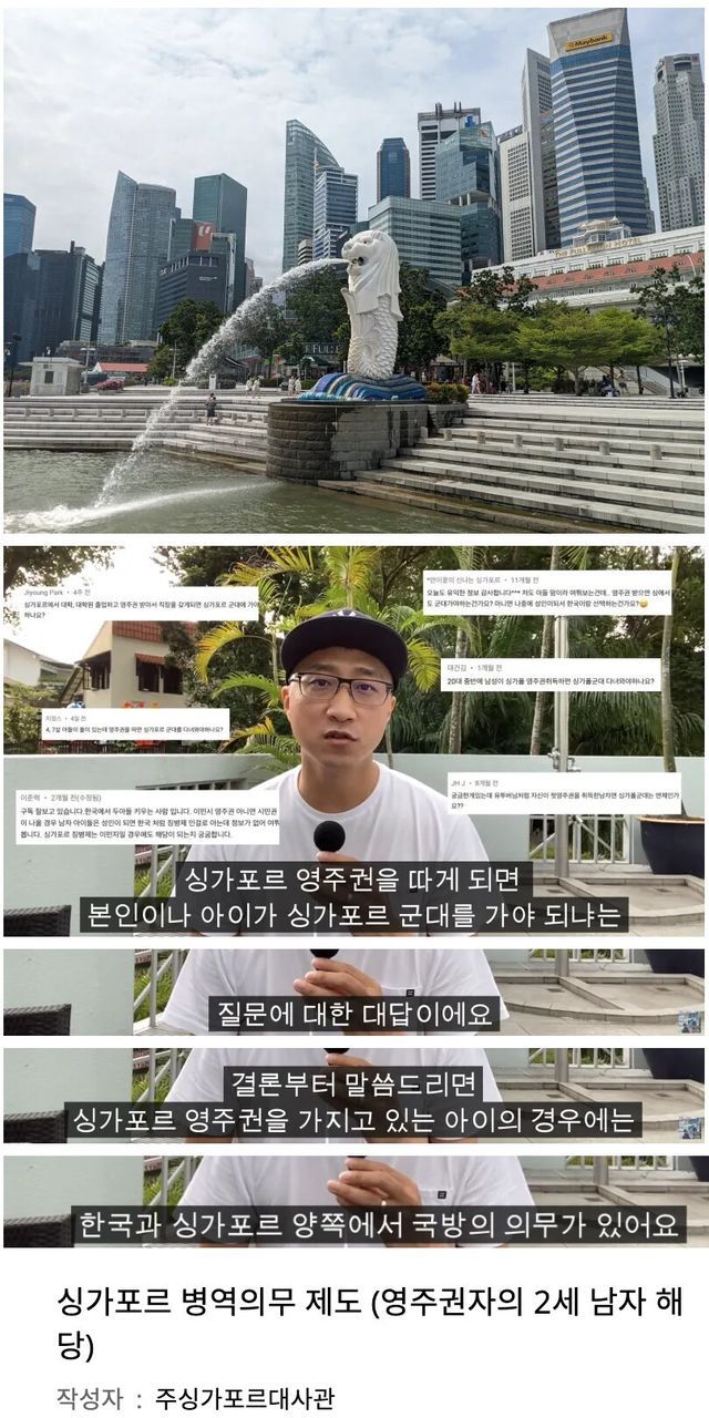 싱가포르. 한국 군대 안쳐줘서 싱가포르 영주권 유지하려면
