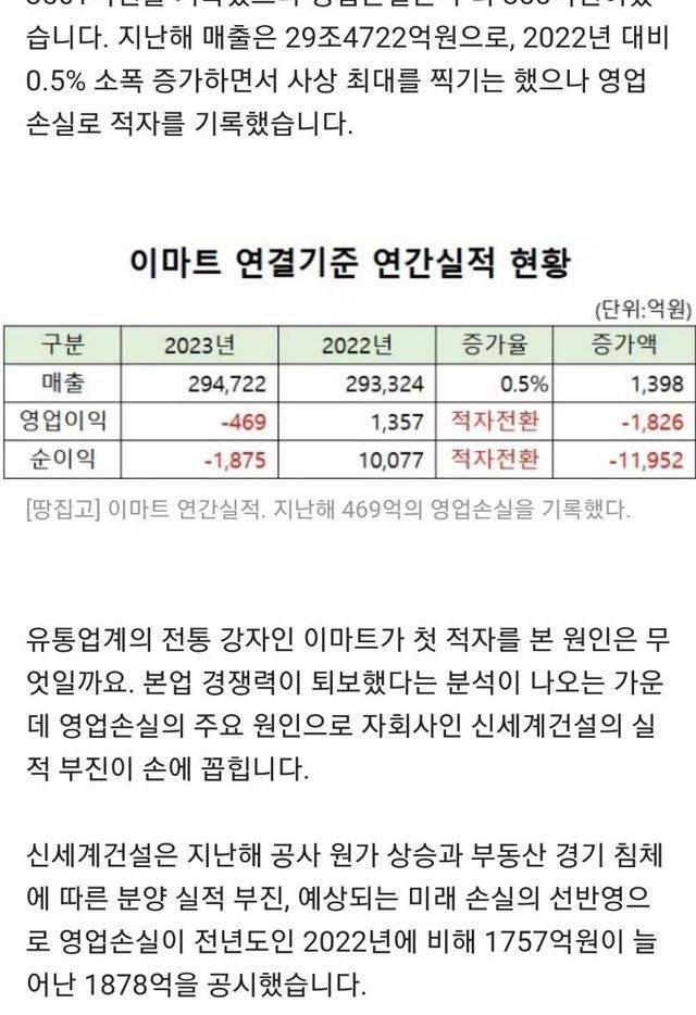 이마트 본업 경쟁력이 떨어진것도 있지만