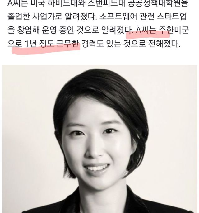 최씨는 중국 베이징대에서 경영학을 전공했고, 재벌가 딸로는 이례적으로 2014년 해군 사관후보생으로 자원입대해 화제가 됐다.