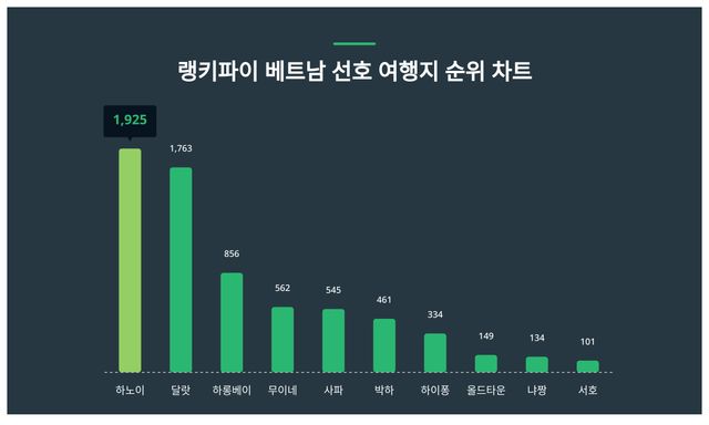 ▲베트남 선호 여행지 트렌드 지수 분석 결과 ⓒ랭키파이