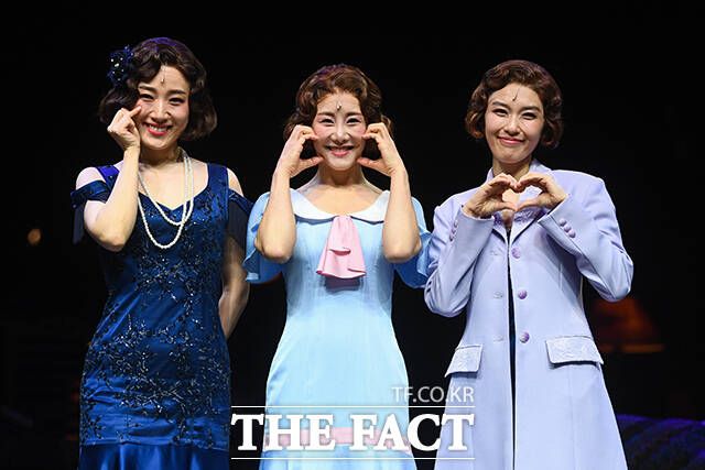 블루 역의 배우 이아름솔과 김소향, 박은미(왼쪽부터)가 뮤지컬 '벤자민 버튼' 프레스콜에서 포즈를 취하고 있다. /서예원 기자
