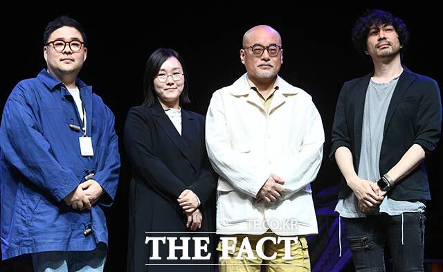 문수호 퍼펫작가와 이나오 작곡가, 조광화 연출가, 심새인 협력 연출 안무가(왼쪽부터)가 뮤지컬 '벤자민 버튼'의 연출을 맡았다. /서예원 기자