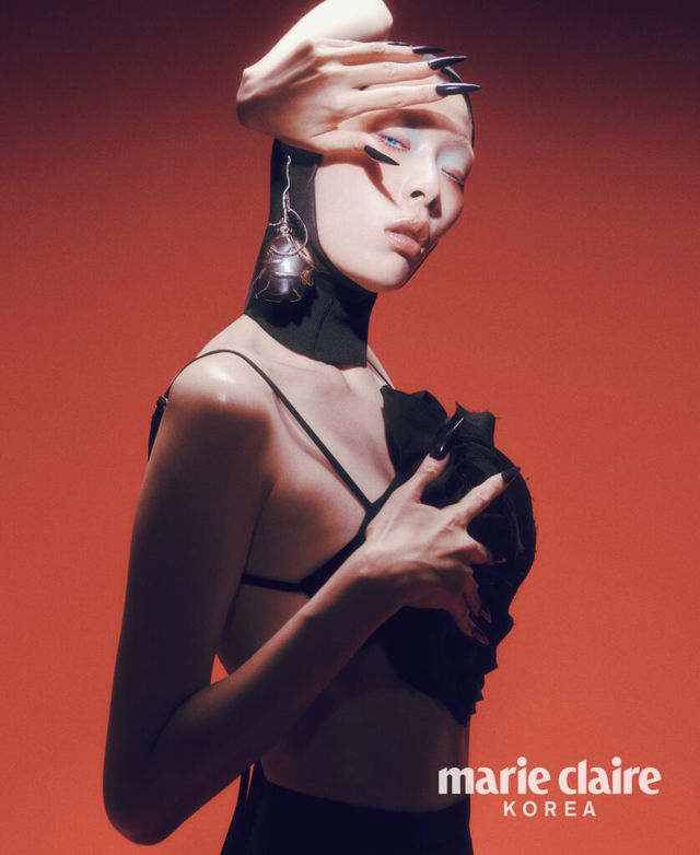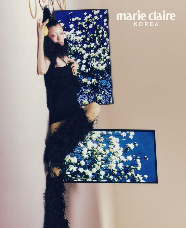 Loewe, 스타킹은 에디터 소장품. 조안 섬세한 디테일의 비스코스 프린지 니트 스웨터, 스털링 실버 이어링 모두 가격 미정