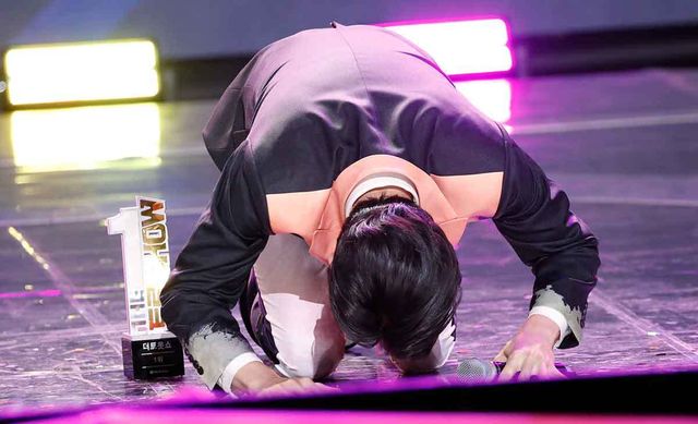 가수 손태진이 4일 오후 서울 마포구 상암동 SBS 프리즘 타워에서 열린 SBS FiL, SBS M ‘더 트롯쇼’에서 1위를 차지한 뒤 감사의 인사를 전하고 있다. 2024.3.4/뉴스1