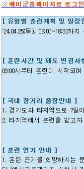 1. 첨부된 훈련통보메일 보고 시간 날짜 맞춰서 새벽5시에 일어나설치고 왕복5시간거리 버스타고 훈련장에 도착함