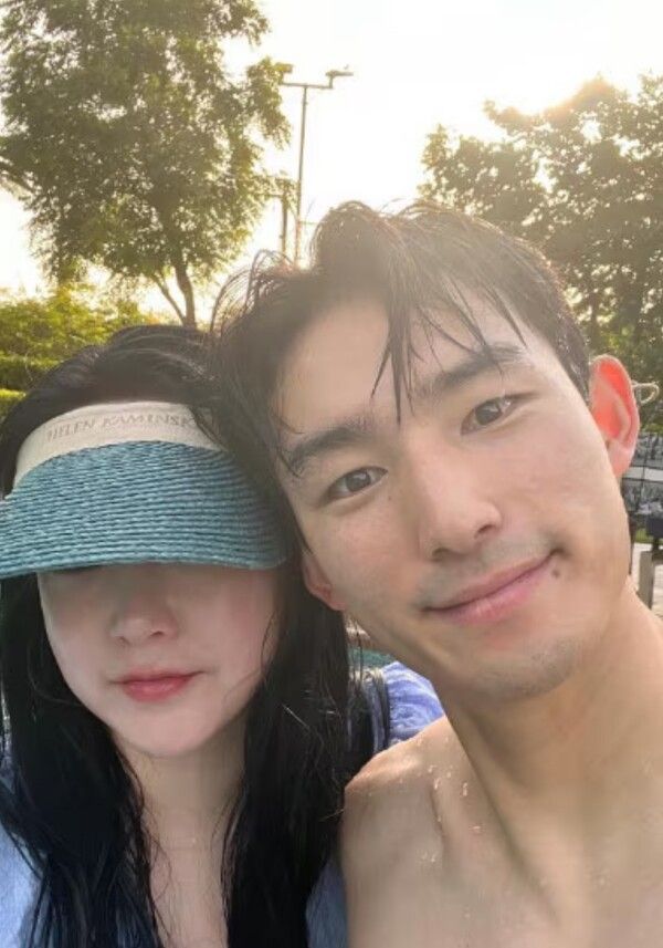 사진 속 소연과 조유민 선수는 수영장에서 함께 휴가를 즐기는 모습이다. 조유민 선수는 상의를 벗고 수영을 즐기고 있는 반면, 소연은 썬캡을 쓰고 햇빛을 가리고 있다.