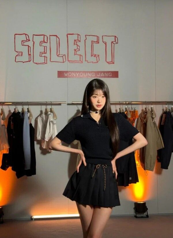 블랙 벨트 드레스를 입은 장원영은 우아하고 여성스러운 매력을 발산하고 있다. 또한, 롱 슬리브 톱과 미니 스커트를 입은 장원영은 시크하고 캐주얼한 분위기를 연출했다.