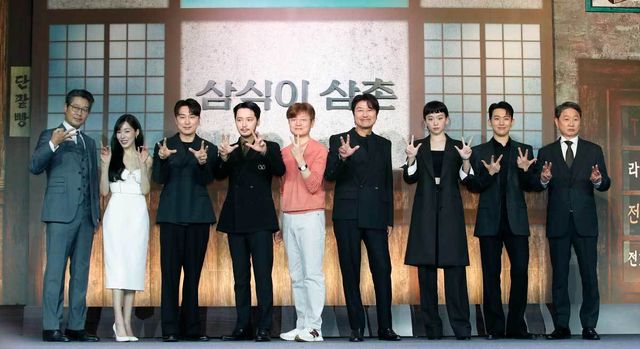 배우 이재명(왼쪽부터)과 티파니 영, 서현우, 변요한, 신연식 감독, 송강호, 진기주, 오승훈, 주진모가 8일 서울 강남구 그랜드 인터컨티넨탈 서울 파르나스에서 열린 디즈니+ 오리지널 시리즈 '삼식이 삼촌‘(감독 신연식) 제작발표회에서 포즈를 취하고 있다. '삼식이 삼촌'은 전쟁 중에도 하루 세끼를 반드시 먹인다는 삼식이 삼촌(송강호 분)과 모두가 잘 먹고 잘 사는 나라를 만들고자 했던 엘리트 청년 김산(변요한 분)이 혼돈의 시대 속 함께 꿈을 이루고자 하는 뜨거운 이야기를 그린 작품이다. 2024.5.8/뉴스1