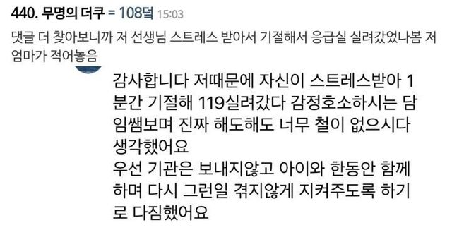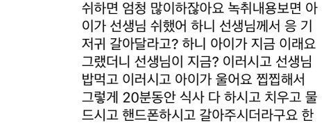 교사 식사중 자기 애 기저귀를 갈아주지 않음(정서적 학대라고 이야기 하는 가장 큰 이유)