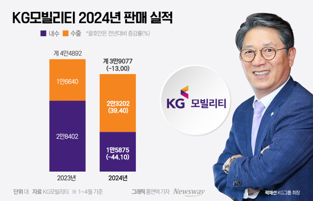 하지만 내수시장에선 판매 회복에 어려움을 겪고 있는 상황이다. 지난해 KG모빌리티의 연간 판매량은 11만5919대로, 이 가운데 내수 비중은 54.6%(6만3345대)였다. 하지만 올해(1~4월 기준) KG모빌리티의 내수 판매 비중은 40.6%(1만5875대)로, 해외 시장(2만3202대)보다 덜 팔린 것으로 나타났다.