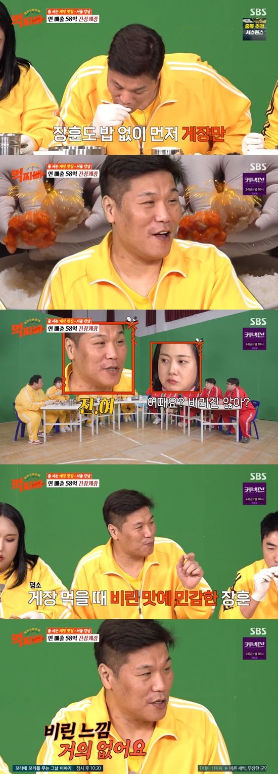 평소 간장게장을 즐겨 먹는다는 장동민은 "간장게장을 진짜 좋아하는데 게가 싱싱하지 않으면 간장의 맛을 강하게 하는데, 단순한 짠맛이 느껴지지 않는다. 그냥 먹어도 달다"고 말했다.