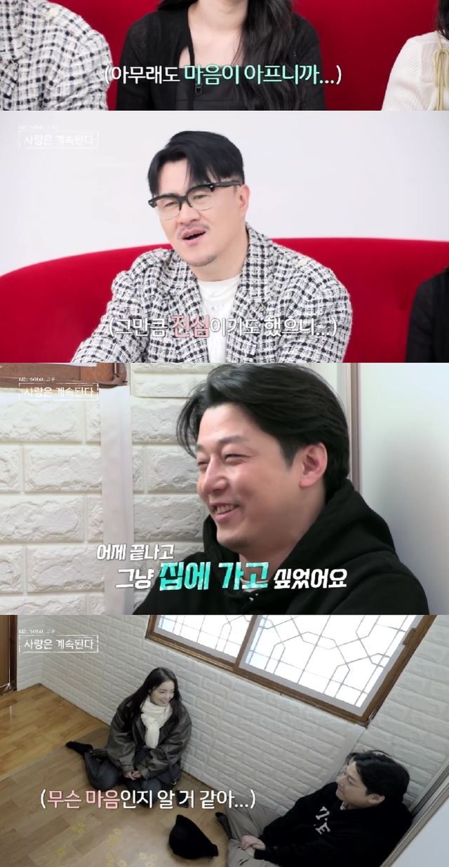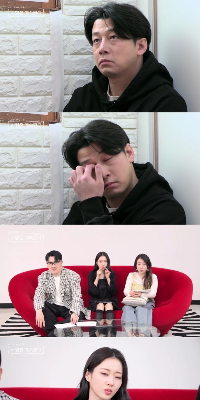 불편해진 11기 영식은 두 사람을 피해 옆방으로 들어갔고, 17기 영숙은 11기 영식의 뒤를 따라가, “(8기 옥순님이) 많이 신경 쓰이시냐?”라고 물었다. 11기 영식은 “지금은 얘기 안 하고 싶다”며 한숨을 내쉬고 눈물을 글썽거렸다.