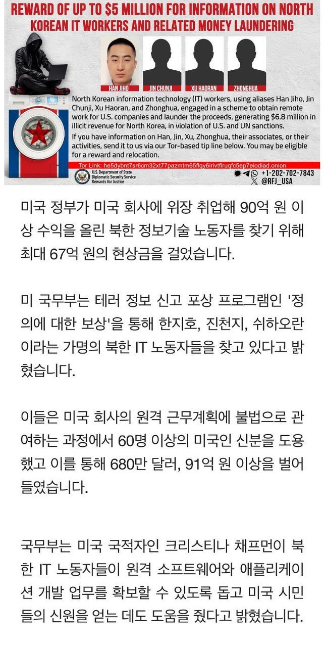 원격으로 근무를 해가지고 약 680만불(약95억원)의 소득을 얻고 해당 금액을 돈세탁 했고