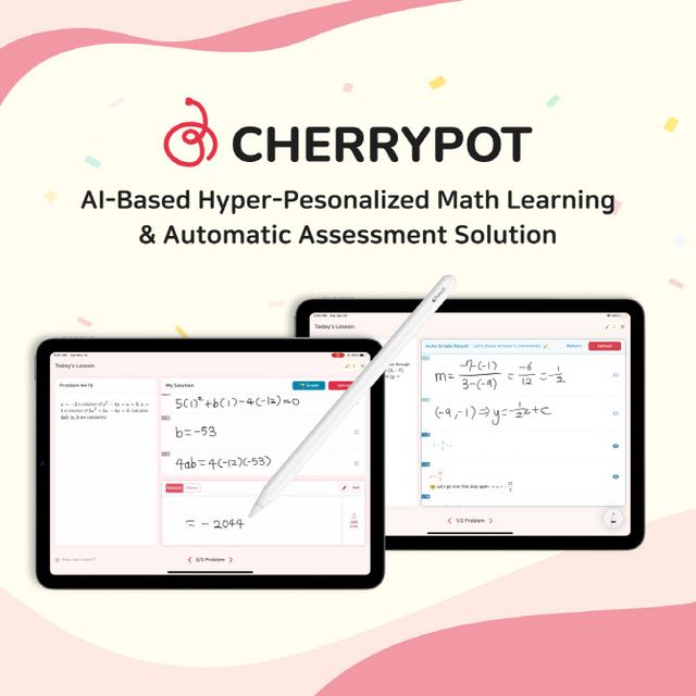교육AI 스타트업 제제듀(대표 이주진)는 손글씨 인식부터 자동 첨삭까지 AI 로 자동화한 교육 효율성 향상솔루션 ‘체리팟‘을 글로벌 교육과정에 최적화해 선보일 계획이다. 현장 부스를 방문하면, 태블릿 PC에서 직접 손글씨로 문제를 풀어보고 실시간 첨삭 결과를 확인해볼 수 있다.