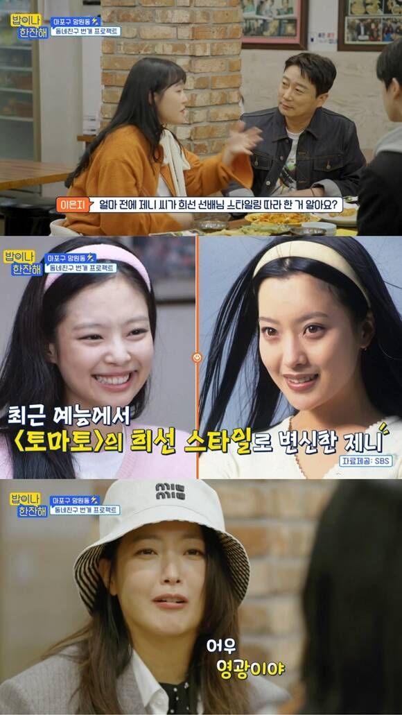 김희선은 지난 16일 방송된 tvN 예능프로그램 '밥이나 한잔해'에 출연해 "제니가 '토마토' 스타일링을 했다. 영광이다"라고 밝혔다.