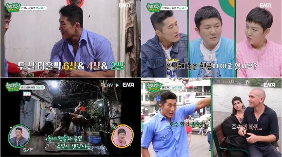 김동현은 '인력거 일로 4자녀를 키운다'는 럼 형의 이야기에 단우·연우·연서 남매의 사진을 꺼내 보이며 교감을 나눴다. 럼 형은 '세 남매 모두 2살 터울'이라는 김동현의 말에 "너 건강하구나?"라는 농담을 던져 웃음보를 자극했다.
