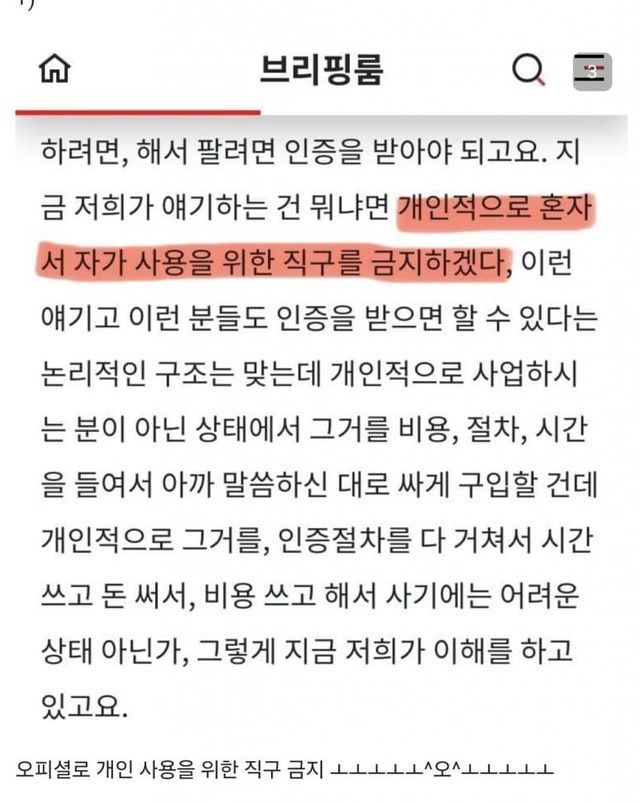 '일반인들이 물건을 싸게살수 있는데요' 같은 근거로는