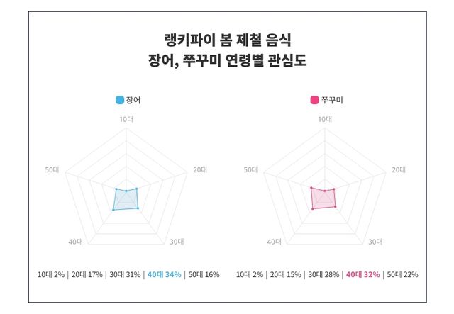 더불어 쭈꾸미는 '56%'로 '여성'에서 남성보다 높은 관심도를 받았다.