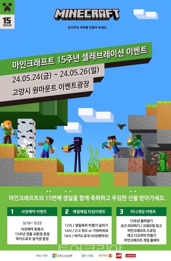 한편, 한국마이크로소프트는 ‘마인크래프트 15주년 셀레브레이션 이벤트’를 고양시에서 성공적으로 개최하기 위해 지난 8일 고양컨벤션뷰로와 업무협약을 체결한 바 있다.
