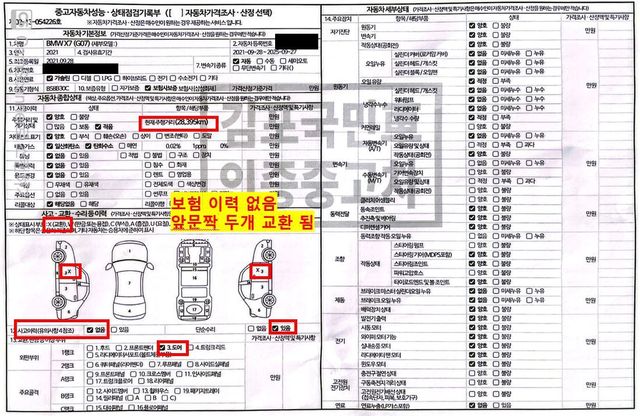 그는 구매한 X7을 출퇴근용, 업무용으로만 타고 다녔다. 지난달까지 약 2만 8395㎞ 무사고 주행했다. 그러다 차를 바꾸기 위해 차량 검사소에서 차량 점검을 받았다. 황당한 결과가 나왔다. 앞문 두 개를 교체한 차량이라고 했다. 글쓴이는 앞문 두 개가 교환됐다고 적힌 점검 결과지도 공개했다.