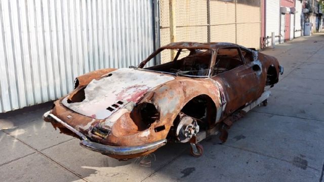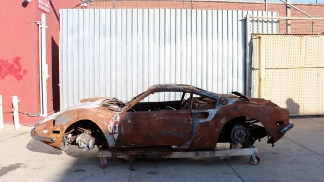 럭셔리와 고성능을 자랑했던 페라리는 바퀴도 사라진 채 껍데기만 남았고, 차체 역시 심하게 그을린 상태다. 그럼에도 자동차 딜러십은 246GT 디노의 상징적 지위를 강조하며 ‘레어 아이템’으로 소개하고 있다.